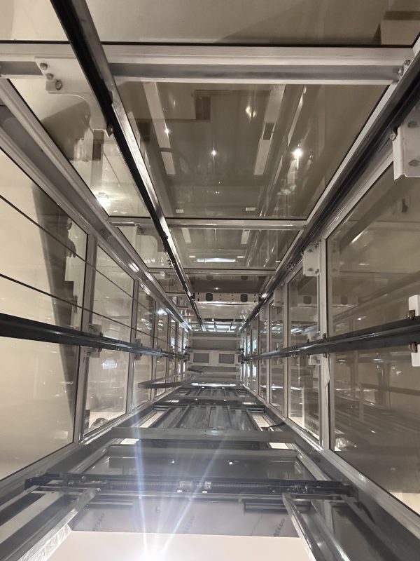 • Chọn dòng kính phù hợp: Hiện nay, đa số các thang máy kính sử dụng kính cường lực dày hoặc kính an toàn có độ dày 10mm để đảm bảo an toàn. Trong đó, các dòng kính dán an toàn có ưu điểm khi vỡ không rơi vụn mà chỉ nứt dạng mạng nhện, giúp bảo vệ người dùng.