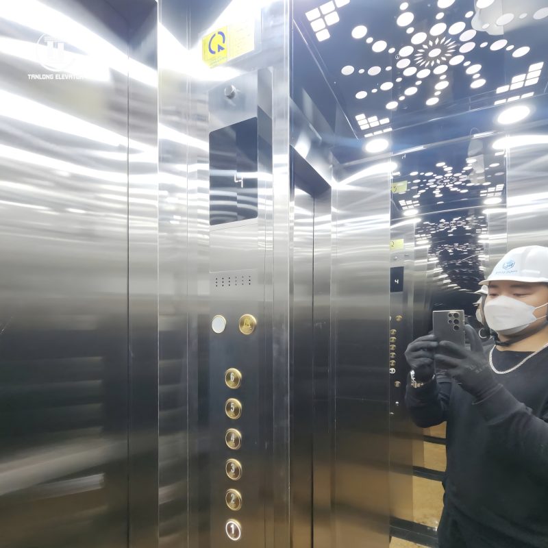 Thông số kĩ thuật Model: Thang máy tải khách Số tầng: 5 điểm dừng Tải trọng: 450kg Công trình: Nhà ở sinh hoạt Địa điểm: Khu đô thị Him Lam, Thường Tín, Hà Nội Vị trí lắp đặt: Cạnh thang bộ