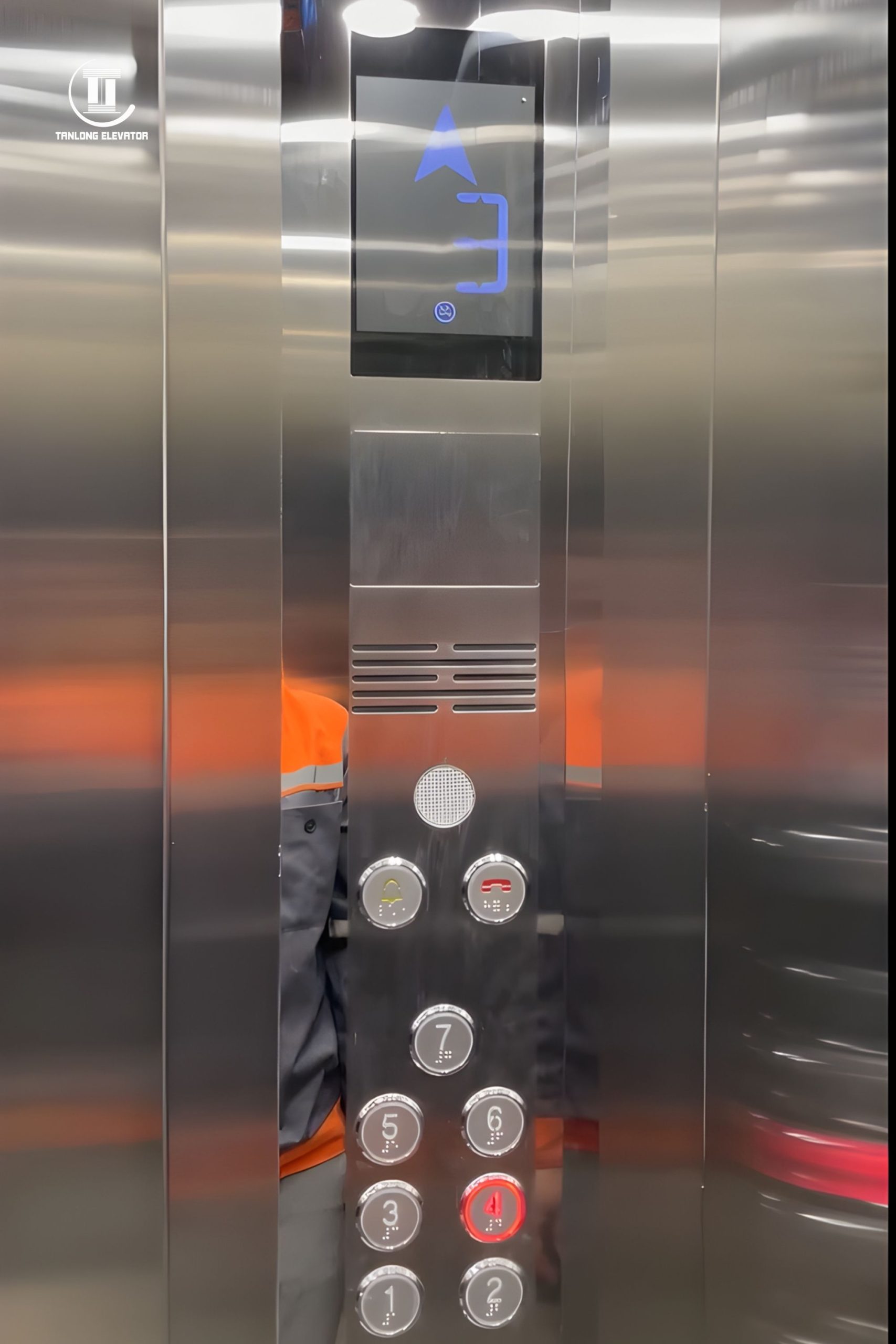 Thông số kĩ thuật Model: Thang máy tải khách Số tầng: 5 điểm dừng Tải trọng: 450kg Công trình: Nhà ở sinh hoạt Địa điểm: Khu đô thị Him Lam, Thường Tín, Hà Nội Vị trí lắp đặt: Cạnh thang bộ