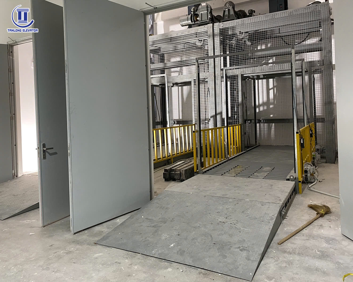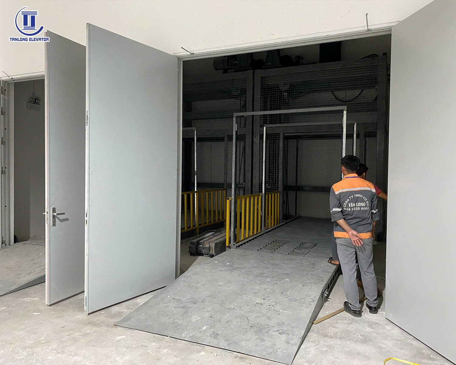 Thông số kĩ thuật Model: Thang máy tải hàng Số tầng: 2 điểm dừng Tải trọng: 3000kg Công trình: Công ty Dệt Hà Nội Địa điểm: Phố Nối, Hưng Yên Loại cửa: Thang 4 cánh mở tim