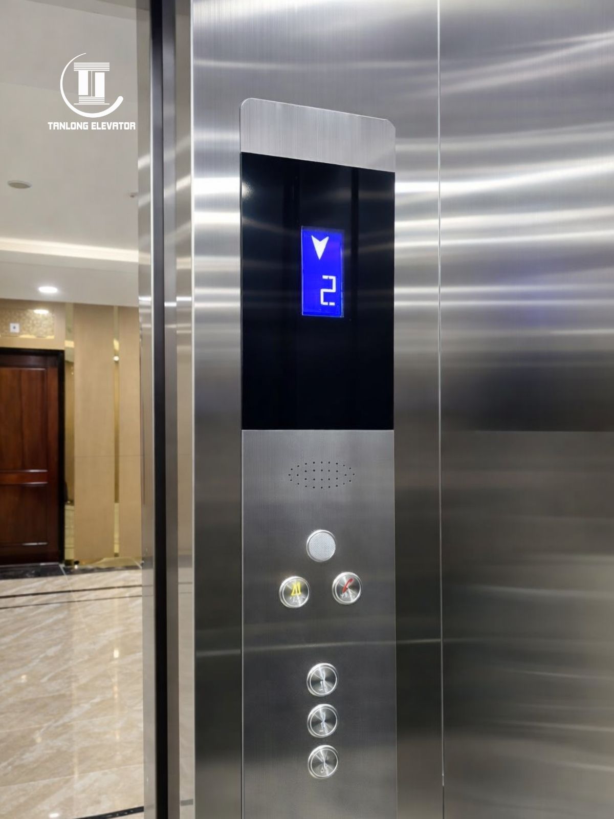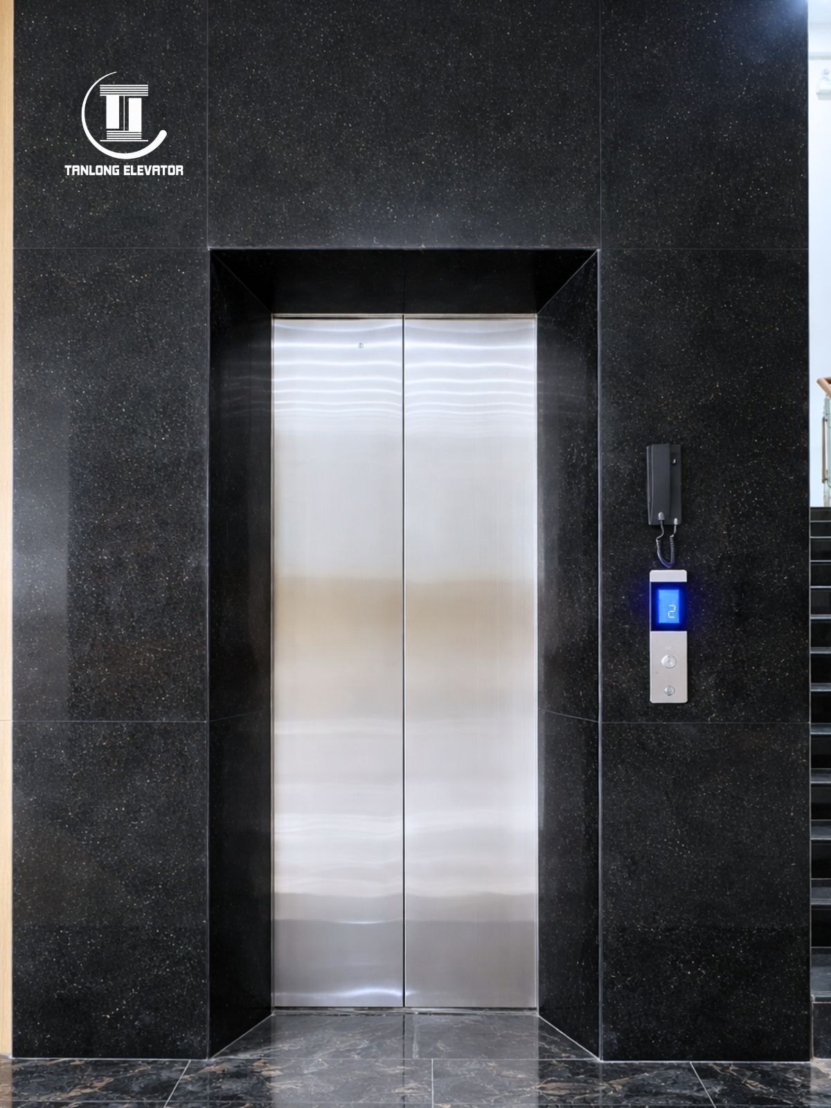Thông số kĩ thuật Model: Thang máy tải khách Số tầng: 5 điểm dừng Tải trọng: 450kg Công trình: Nhà ở sinh hoạt Địa điểm: Khu đô thị Him Lam, Thường Tín, Hà Nội Vị trí lắp đặt: Cạnh thang bộ